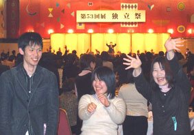 そして生徒達と有楽町の東京会館で行なわれる独立祭に出席。「参加費(11000円)のもとを取るぞ!」と