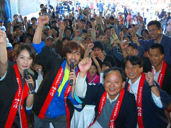 梅乃宿バンザ〜イ! (↑この方が社長の吉田暁さん)