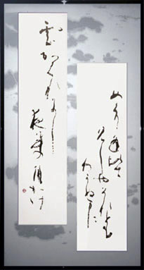 「めぐり逢ひて見しやそれともわかぬまに 雲がくれにし夜半の月かげ(原文)」(百人一首 紫式部) 1995年 <額寸約160×80cm> |