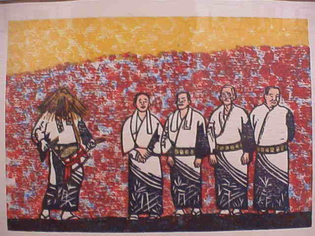 作者は10年以上八尾に通い詰め、おわらに魅せられた熱い思いを、木版画で表現した力作。