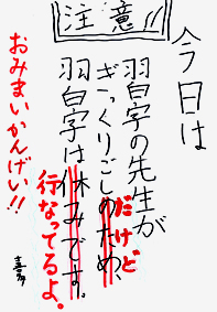 年末ギリギリまで子供達の書き初めの手本や年賀状とか書いてるから、正月くらい筆から解放されたもん。