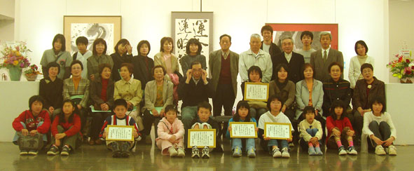 「鵬翼会展・つばさ子供習字2004」の集合写真。森大衛、タイマーに間に合わず。(^^;