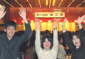 そして生徒達と有楽町の東京会館で行なわれる独立祭に出席。「参加費(11000円)のもとを取るぞ!」と