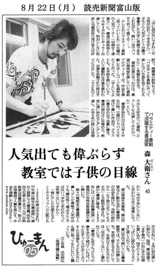 8月22日(月)の「読売新聞 富山版」に森さんのインタビュー記事が掲載されました。