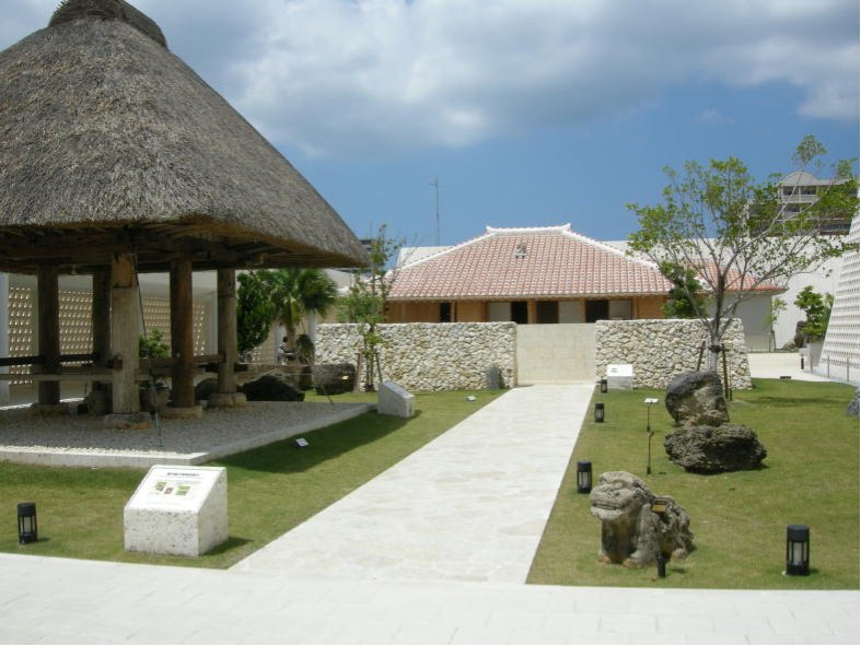 | 写真1.屋外展示の高床倉庫と 琉球の古民家(復元新築) |