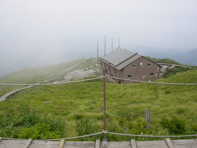 三朝温泉(みささおんせん)まで下りそこから北上して倉吉から9号線に再び戻り、パワーフィールド(風力発電地)の風車のペラをくぐるようにして西に向かう。出雲大社に行く予定が、あまりに大山(だいせん)がくっきり見えたので、今日がチャンスかなと、途中から左に折れて県道に入り溶岩裾野をさかのぼって登山口の大川寺に向かう。登山口の100mほど上手の駐車場で車を止め、午後1時に登山道に入る。駐車場には自販機もなくお茶の買い込みタイミングを外したことを悟る。途中でおばさんに恵んでもらう。代金はついぞ受け取られなかった。ひたすら上り、8合目からは木道をガス混じりの風に時折ふき落とされそうになりなりながら登ること2時間20分、山頂で10分休憩して、下りは1時間30分。下りの8合目から6合目までは足がガクガクで、下る人も少なくやや不安を覚えた。1日のうちに2つの山登りはやはり酷だったか、足が悲鳴を上げている。皆生温泉で、早速温泉治療だ。Mitac Mio 168RS は、めずらしく寄り道なしに東光園に案内してくれた。