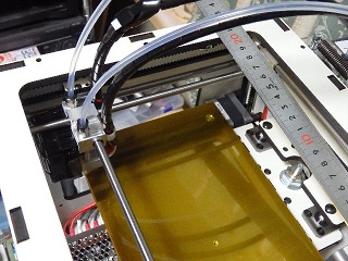 金尺でガントリーを調整中 | Repetier-Hostで調整中の画面 |