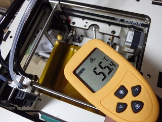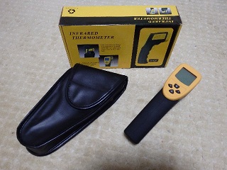 3Dプリンターでキレイにプリントするためには、様々なパラメータを適した条件に設定する必要がある。特にノズルやテーブルの温度が大切で、モニター画面で確認することが出来るが、テーブルの中心など代表的な場所の温度を測定している。テーブル全体の温度を知るには2次元で温度画像を表示するサーモビュアーが最適だが、高価である。そこで、安価な非接触放射温度計がないかネットで調べてみると、Amasonで”【-50~+650℃】 非接触式 赤外線放射温度計 SS5650 デザイン!レーザーポインタ付!電池付き! ¥ 3,150”が見つかった。この他に温度範囲が異なる機種もあるが、温度範囲が広く、測定点が解るようにレーザポインタとバックライトが付いているこの機種を購入することにした。