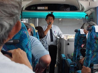 昼食が済むと、再びバスに乗り、信州中野ICから上信越道に入り、上田に向かう。2日前に通った同じ道だが、今度は雨では無く視界が少し開け、近くの山々が見える。むしろ日差しが強くカーテンが必要となる。