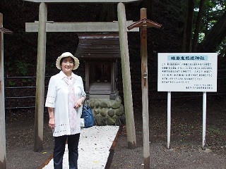 吊り橋は人が通るとやはり揺れる。吊り橋を渡り、さらに先にある鬼怒楯岩に向かって登り道を歩く。途中にある楯岩鬼怒姫神社でお参りをし、岩の頂上までは石の階段があり、フウフウ言いながら15分ほど歩いて、岩の頂上に着いた。日頃の運動不足がたたり、もう脚が痛くなる。同じ来た道を通りバスまで帰るが、この頃には雨が本格的に降ってきて傘は正解である。