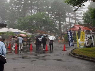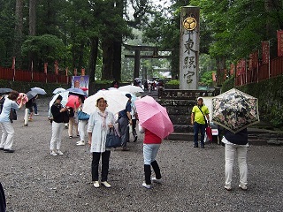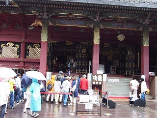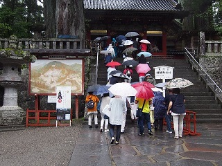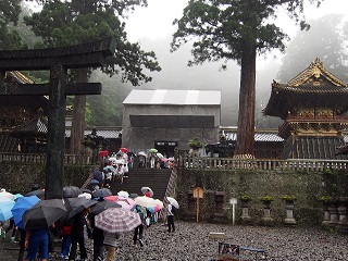 車窓の外は雨や霧で曇っており、遠景はほとんど見えない。小1時間ほど走ると日光山の総本山である輪王寺の駐車場にバスは着いた。雨が相変わらず降っている。