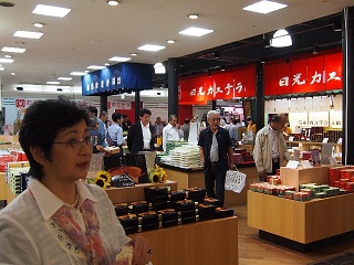 カステラ館も土産を探している子供たちがいっぱいで2階の食事会場まで人をかき分けて階段を登る。ここの昼食は湯葉御膳で、湯葉こんにゃくや栗おこわがおいしかった。食後に土産として「日光甚五郎煎餅」と「金箔カステラ」を買って、自宅まで宅急便で送った。