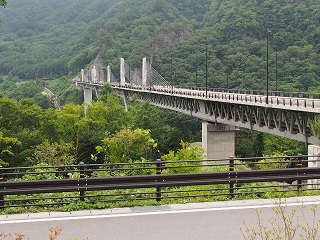 途中、道の駅「八ッ場ふるさと館」で休憩する。駅の横に新しい橋が見え、近くに寄って看板を見ると、不動大橋(八ッ場大橋)と書いてある。ダム建設で話題となったところである。