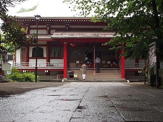 日光は至るところで修復が行われており、輪王寺三仏堂も修復中で足場に囲まれ、その外壁に建物の等寸大の絵が描かれ、雰囲気を味わうだけである。三仏堂には日光三社権現本地仏(千手観音・阿弥陀如来・馬頭観音)の三体の大仏が祀られており、本堂に入って住職の説明を聞きながら、修復中であったが、その一部を拝することが出来た。輪王寺では権現札とお守りを買った。