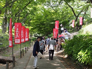 城の中に入ると添乗員の荻さんから「NHKの企画展が行われている」と紹介され、まずはこの企画展をみることにした。番組の出演者や真田の歴史などが展示され、信繁(幸村)役の堺雅人さんの挨拶ビデオも放映されていた。通常はこのようなイベントでは撮影が禁止されているが、鎧甲のコーナーだけは写真撮影が可能で、アテンダントも撮影するよう勧めていた。放送用のセットを3Dメガネで体験できるコーナーがあり最新の映像技術を経験することが出来た。出口前には土産物コーナーあり、ここで真田紐を購入。