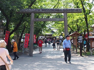 東照宮の参道は東京に向かっている。参道の砂利道を表門に向かって歩き、途中の神厩舎で3猿(レプリカ)、伊達政宗などの大名が寄進した灯籠をみて、拝殿に入ってお参りをし、その帰りに左甚五郎作と伝わる眠り猫(混んでいたので後になった)を見学した。拝殿以外は撮影がOKで、修復中の陽明門で、修復後には見えなくなる壁画なども撮影した。修学旅行シーズンのせいか、子供たちの団体が多く訪れていて、東照宮の境内は身動きが困難なほど混でいた。