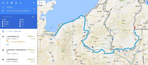 旅行の経路図はグーグルマップで作りました。Yahoo地図でも交通手段として鉄道と車のどちらかを選べますが、両方の地図ソフトとも、鉄道と車の混在ルートは作成できませんでした。