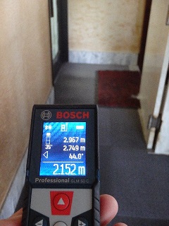 メジャーで長さを測ることがあるが、1人でチョット長い距離を測る場合には基準点がズレたり。測定点に近づけなかったりと、面倒な事がある。そんな時に便利なのがレーザー距離計である。