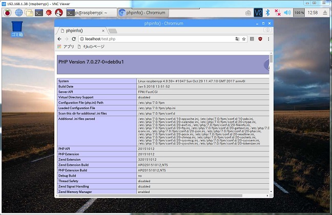 | ifconfig(eth0、wlano共正常動作) | phpinfoの出力例(php7.0) |