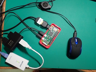 | test.phpの実行画面(有線LAN接続) | 有線LANアダプタ(左下)とラズパイZERO |