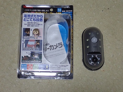 防犯用などに監視カメラがありますが、電源の確保や高価格の問題があります。既にカメラはあるのですが、さらに死角をなくすために、なるべく安価に設置したいと思い、ネットで探してみると、@乾電池式で配線不要、A屋外・屋内のどこでも付けられる、B赤外線LEDで夜間でも撮影可能、C安価、のセンサーカメラ(SD1000、REVEX製、\3,930)を見つけ、アマゾンで入手した。