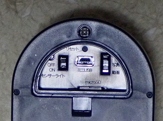 SD1000電池式センサカメラ カメラの裏側(スイッチとカードスロット)
