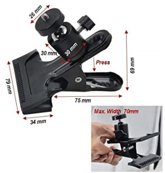 MyArmorのどこにでも挟める360度回転雲台(\800)を入手した。この雲台は幅70mmまでのポールや板にグリップすることで固定され、雲台に取り付けたカメラを自由な位置に固定することが出来る。また、テーブルの上にそのまま置くことでマクロ撮影用のスタンドにもなる優れものである。