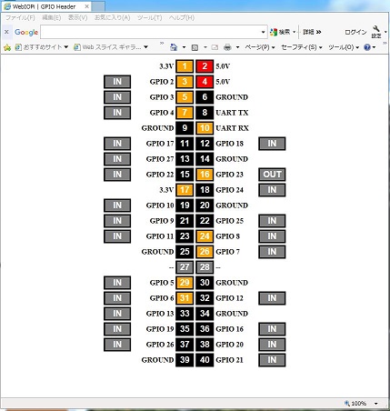 | WebIOPiの起動画面 | GPIO Header画面 |