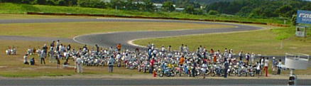 ■ そうこうしているうちに、前夜祭のパレードランの時間となり、参加希望者は皆移動する。 しかし、待ち時間の時にレーシングエンジンのマシンはまともにアイドリングしないために 爆音でふかしている。(エンストするから。)もう暴走族状態である。 他のパレード参加のバイク達が何事か?と振り返る。(笑)