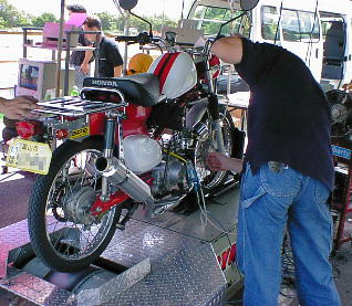 エンジンの暖気を軽めに済ませていよいよシャシダイの上に載せる。