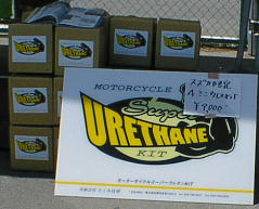 ■ 鈴鹿サーキット南コースで朝6時から受付開始だが、会場は既に長蛇の列!!一時入場できない車があったほど。 そして受付を済ませた時に、鈴鹿8耐のチケットをプレゼントされ、さらに全員に武川製品を約5種類の中から好きなモノを1つ 選べるというサービスがあった!!その中には、アルミドレンボルト、アルミ鍛造ブレーキアーム、 Tシャツ2種類、スプロケット(16T)であった!どれも1〜3千円の品物である。 悩んだ挙げ句、今一番使いそうなスプロケットを選んだ。(うれし〜〜!!)