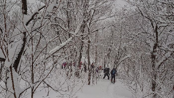 渡渉のところでは、水量も多く、雪も少なめで、ちょっと大変そうです。