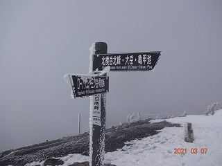 ゴンドラはコロナ対策で50%乗車と聞いていたが何か多いような気がしましたが中では全く会話はありません。8分後には2200mに到着、外は寒く坪庭看板前でアイゼンを装着していざ出発、登山者はそれほど多くない。まず北横岳へ向かいます。広大な坪庭歩きから始まり北横岳ヒュッテで休憩、北横岳では南峰と北峰の2つのピーク