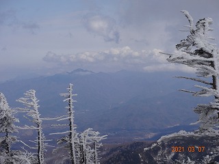 縞枯山展望台で雲の切れ間から南八ヶ岳が顔を見せました。次第に青空が広がり蓼科ブルーを見て感激でした。