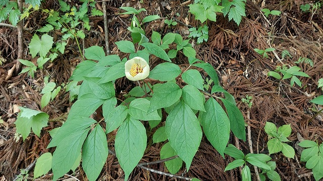 たった1株のヤマシャクヤクの開花に合わせた山行に成功しました。