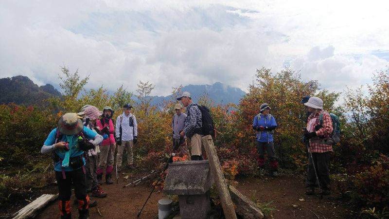 駒ケ岳(根知から) 令和3年10月9日(土) 晴れ チーフリーダー ○島さん サブリーダー ○橋さん 参加11人 頚城駒ケ岳の結果報告・写真をチーフの○島さんからいただきました。 ありがとうございます。 険しい山道、皆さまお疲れ様でした。 頂上にて
