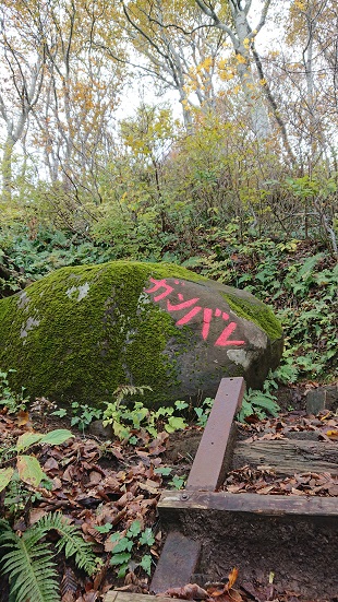登山口から「二ノ字」までは少し急ではあるが、角材で非常に丁寧な階段が作られていて、