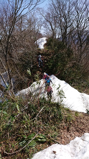 雪の切れた尾根道