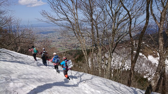 八乙女山〜大寺山への尾根道はまだ1m位の積雪があるのですが、