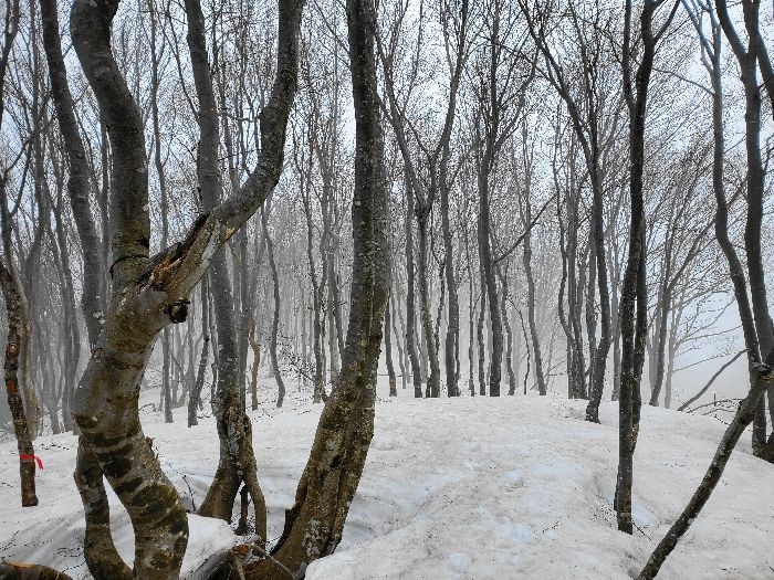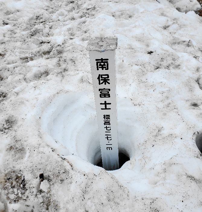 雪は頂上近くまではなく南保富士に着く。山頂は曇りでした。
