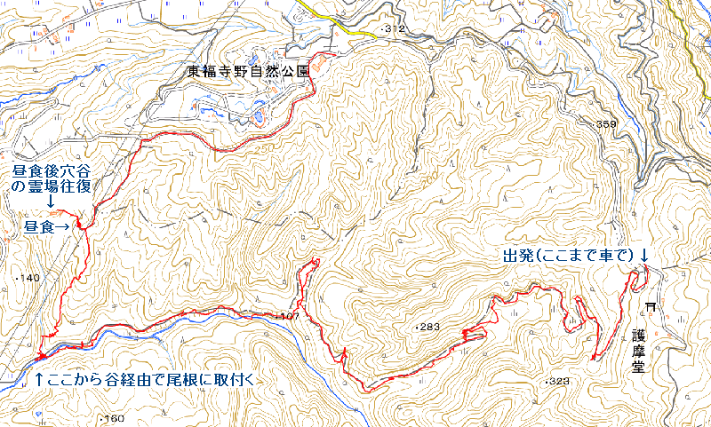 今日の軌跡 護摩堂まで車で行き、そこからぐるりと回り東福寺野Pまで