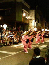 おわら総代の挨拶のあと午後8時、天満宮前から通りを上手