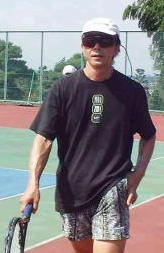 オゾン層の破壊が進む中、テニス族にとって、紫外線対策はなんといっても重要だ。 まずは、日焼け止めクリームとサングラスは必携品。サングラスも横からの光を防ぐタイプ。キャップももちろん。 昔だったら、え〜暑そう! と見向きもしなかった黒のシャツも、紫外線防止効果から着てしまう。 すると、右のような出で立ちになる。う〜ん、やっぱり暑苦しい。 日焼け止めクリームはべたべたしている。自称、自然派を通してきたこともあって、気が進まない代物だ。しかし、紫外線の恐怖に比べれば仕方ないと、恐る恐るつけてみると、確かに日焼けの火照りから解放されて、とても有り難いものだった。 しかし、こんなにガードすればするほど、大汗をかけば、日焼け止めクリームはダラダラととれてくる。サングラスの中は蒸せる。 はたから見れば、「物好きにも、よくぞ、」と言いたくなるのもわかる。 女性の方は、さすがにもっと徹底していて、長袖、長パン、手袋という方もいらっしゃる。 つれあいは、サングラスにバンダナを口の周りに巻いて、銀行強盗の手配写真風にまとめていた。これは爆笑ものだった。 究極の対策1 フルフェイスヘルメットはいかが? では、もっと紫外線が強くなったらどうなるのか? 日中どうしても野外スポーツがしたいというワガママな連中は必ずいるのだから、そのために、フルフェイスのヘルメットを開発してほしい。 たとえば、自転車用のヘルメットって実はとても軽くて涼しい。硬質の発泡スチロール製だから、直射日光の熱を全く通さず、風だけを通してくれる。 この前面にフルフェイスのバイザーをつければできあがり。体温で暑いなら、小型のファンを仕込んで強制排気という手もある。 そこまでするのって? だってテニス馬鹿は、たくさんいるのだから。 究極の対策2 屋内コートとナイトゲームの魅力 夏の屋内コートは穴場である。テニスは野外でという方や、自然派が多いせいだろうか。けっこう空いている。直射日光が無いぶんだけしのぎやすい。それでも汗の量は野外と変わらず尋常ではないが。 夏のテニスの快楽編は、やっぱりナイトゲームに限る。 帽子も、サングラスも、日焼け止めもいらない。気温も少々下がり、吹きすぎる風も、日中の熱風と違ってしのぎやすい。 照明灯に集まる虫など、自分たち同様、夏の夜を楽しむお仲間と思えばかわいいもの。 バッタさんをラケットで、コート外に退去いただき、顔にぶつかりそうな蛾を指で払って、サーブを打つ。昼間よりも威力が増すから不思議である。(単に、見にくいだけでしょというも声あるが。) |
