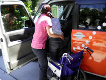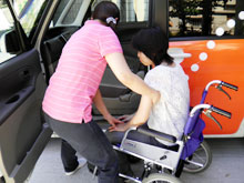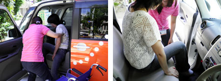 | (左)片麻痺の人が乗用車に乗る際の介助方法 | |