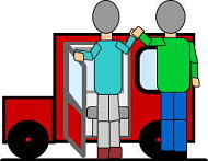 | バス・自動車の乗り降り バスの乗り降りは階段と同じ要領で、誘導者が一段先に乗降する形で行ないます。しかし、一つ一つのステップが高いため、手すりを利用したほうがより安全です。必要であれば手すりに触れさせてあげ、単独での乗降でも問題ありません。その際、誘導者は乗車する時は後ろから、降車する時は先にして転落や踏み外しなどに対応できるようにしてください。料金の支払いや座席への誘導については基本的に電車と同様です。 視覚障害者をドアのすぐそばまで誘導して、右手を車の屋根に、左手をドアに触れさせてあげてください。白杖を持っているときは、手を車に誘導する前に預かってください。ドアの開閉は誘導者がひと声かけながら行い、乗車は視覚障害者が先、降車は誘導者が先です。 |