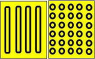 | 歩道や駅のホームに設置されている点字ブロックは、歩道で視覚障害者を誘導するものです。点字ブロックには、2種類あり棒線は「進め」、点は「注意」を意味します。点字ブロックの上に自転車を止めたり、物を置いたりすると視覚障害者にとっては大変危険ですので、絶対にしないでください。 | ![]() |