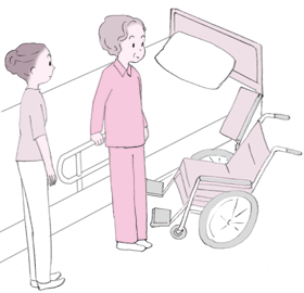 ![]() 最初は自分の足で立つことから。少しずつ力をつけて重心移動ができるようになれば、介護も楽になります。 |