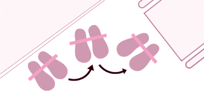 | ステップする足の位置に、カラーテープなどで目印をつけておくと、踏み換えの際に介助者が指示を出す目安になります。目印に向けて「右足を前に」「次は左足を後ろに」という具合に指示を出しましょう。 | ![]() |