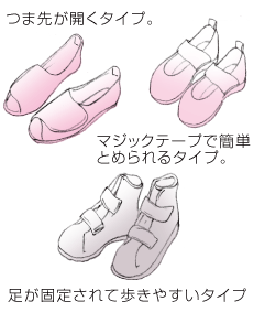 ![]() 靴は伸縮性があり、軽くてすべりにくいものを。 |