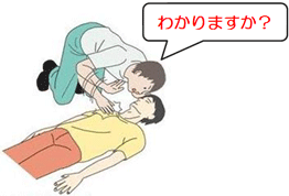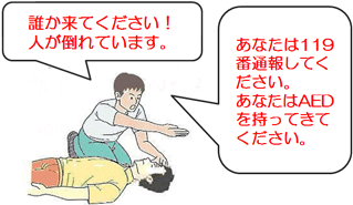 2.反応がなかったら、大声で助けを求め、 119番通報とAED搬送を依頼 ![]() |